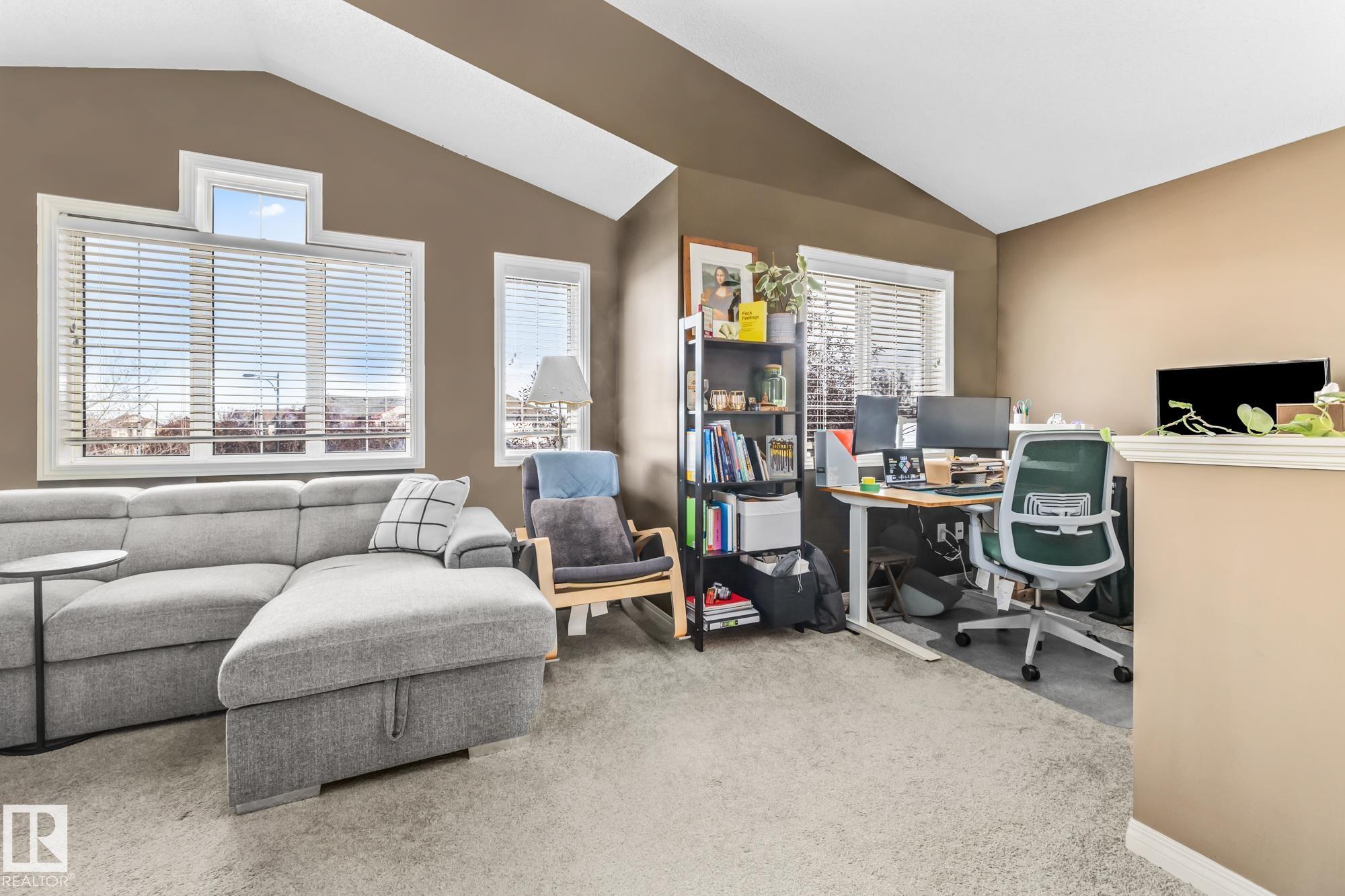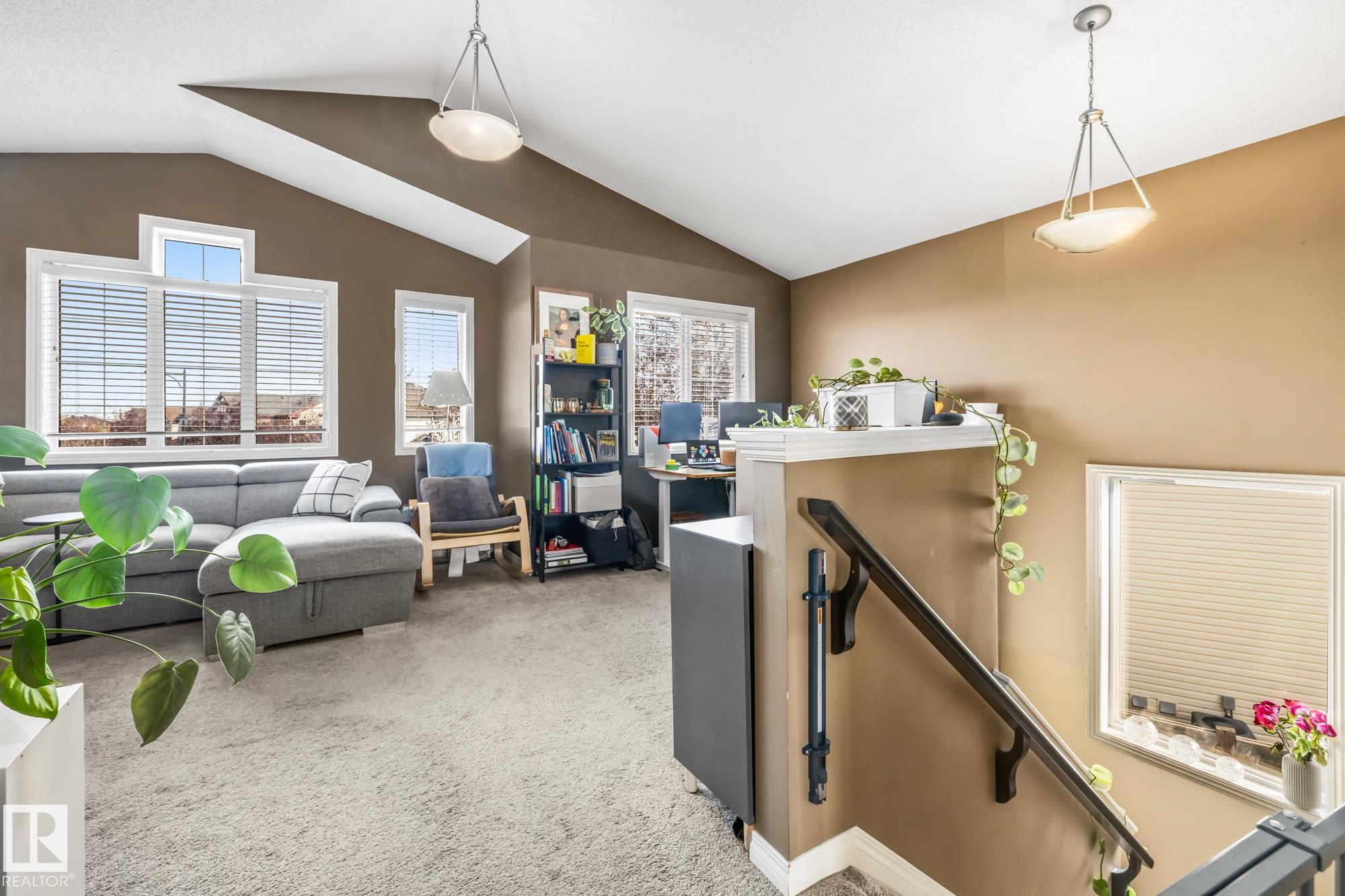 Welcome home to this well-kept half duplex in the heart of Sherwood Park! Upstairs features 3 comfortable bedrooms, a spacious VAULTED BONUS room, and a 4-piece bathroom ... MLS®: E4461613 - Summerwood 2 Storey $424,900